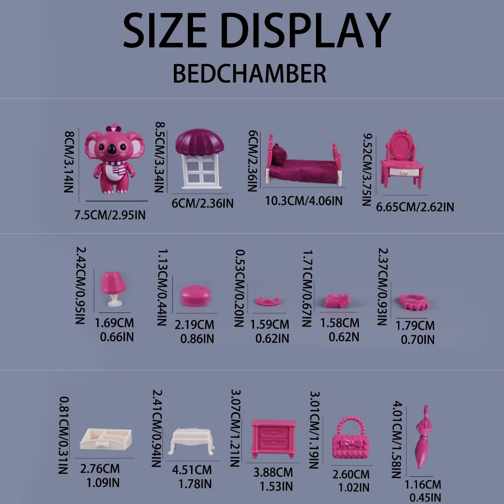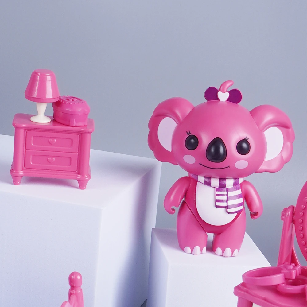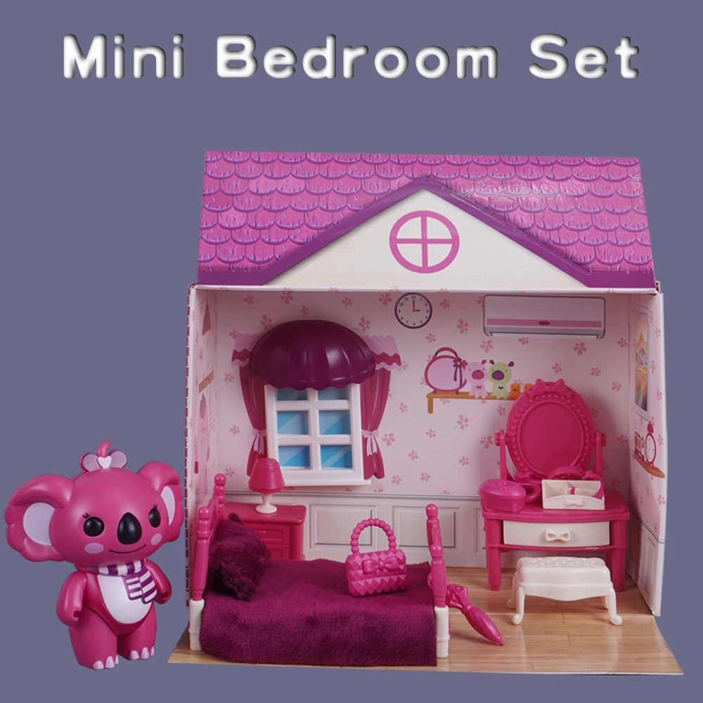 3D Cardboard Puzzle Koala Bedroom Dollhouse 1:12 Mini Bed Dressing Table Accessory Model Play House Toy Miniature Furniture Gift