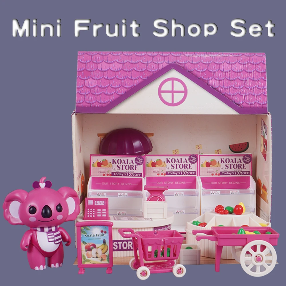 3D Cardboard Puzzle Koala Fruit Shop Dollhouse 1:12 Mini Fruit Stall Shelf Model Play House Kitchen Toy Miniature Furniture Gift