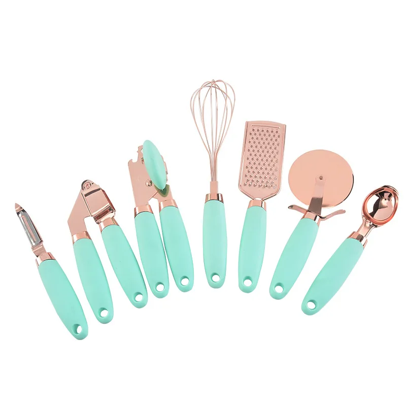 4-7 قطعة الذهب الوردي هراسة الثوم آلة قطع البيتزا المطبخ أداة مجموعة يمكن فتاحة البطاطس الطبخ الراقية أدوات المطبخ اكسسوارات