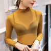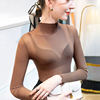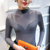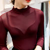 40-85 كجم الفتيات انظر من خلال شبكة النسيج تي شيرت المحملات الإناث كامل كم Ruched و نصف الياقة المدورة التي شيرت قمم المرأة الربيع الخريف