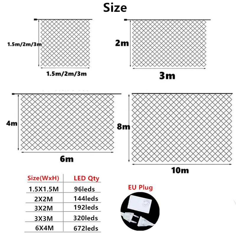 The package includes: 1x EU Plug LED Net Mesh String Lights
