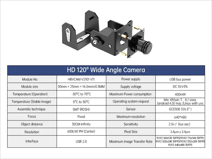 – DOF of camera pan tilt: 2DOF. Horizontal/ vertical rotation angle:180°