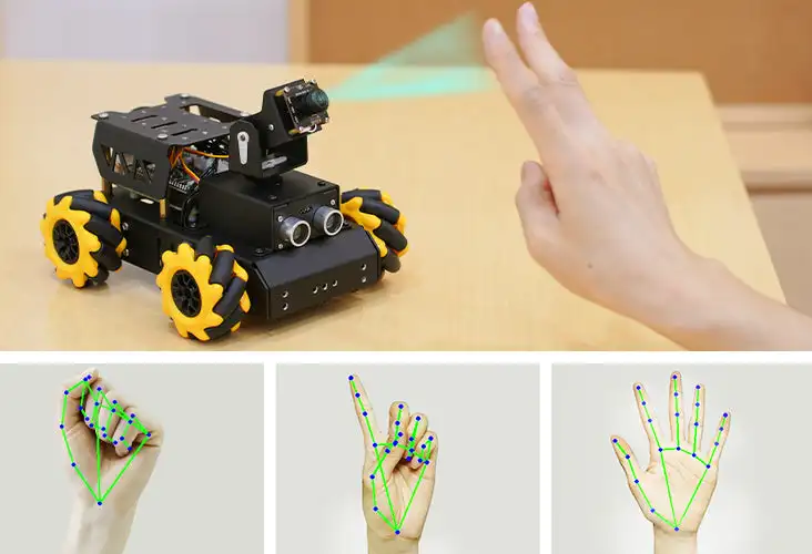 TurboPi cooperates with OpenCV to count fingers. Then interact with you based on the number of finger, such as honk horn, twist and change color of light.