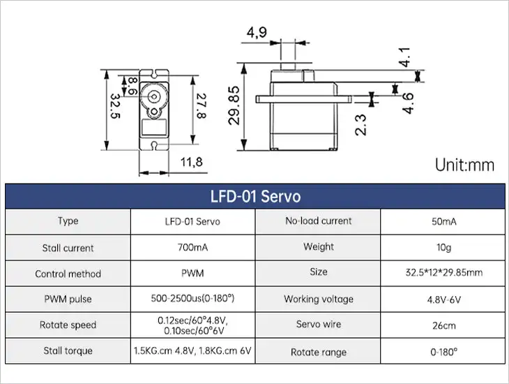– Servo: LFD-01 anti-blocking servo