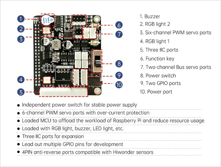 * 4PIN anti-reverse ports compatible with Hiwonder sensors