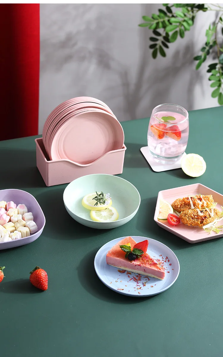 5 قطعة القمح القش المائدة قابلة لإعادة الاستخدام المنزلية أطباق التوابل الصلبة فول الصويا طبق صلصة الملح وجبة خفيفة لوحة صغيرة لوازم المطبخ