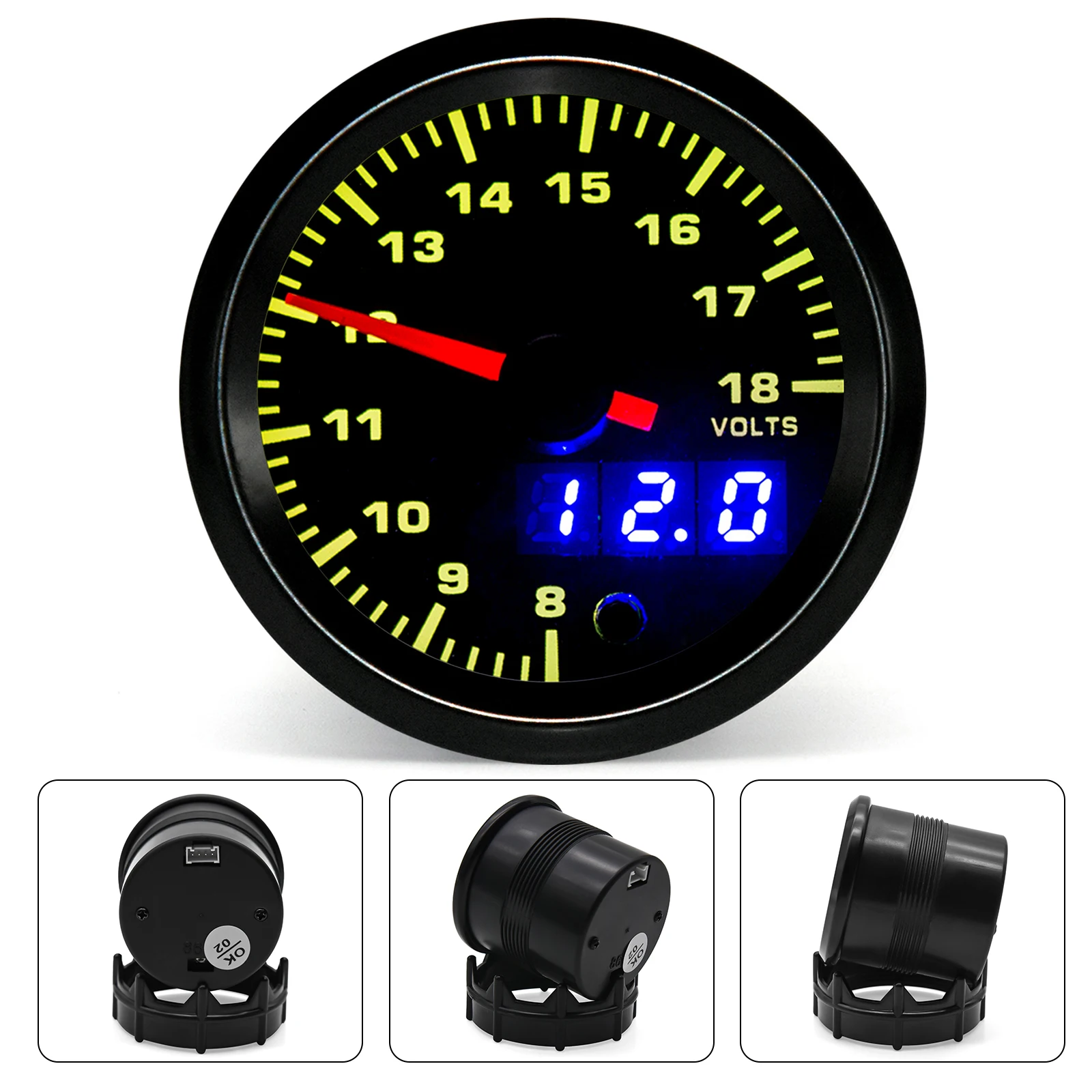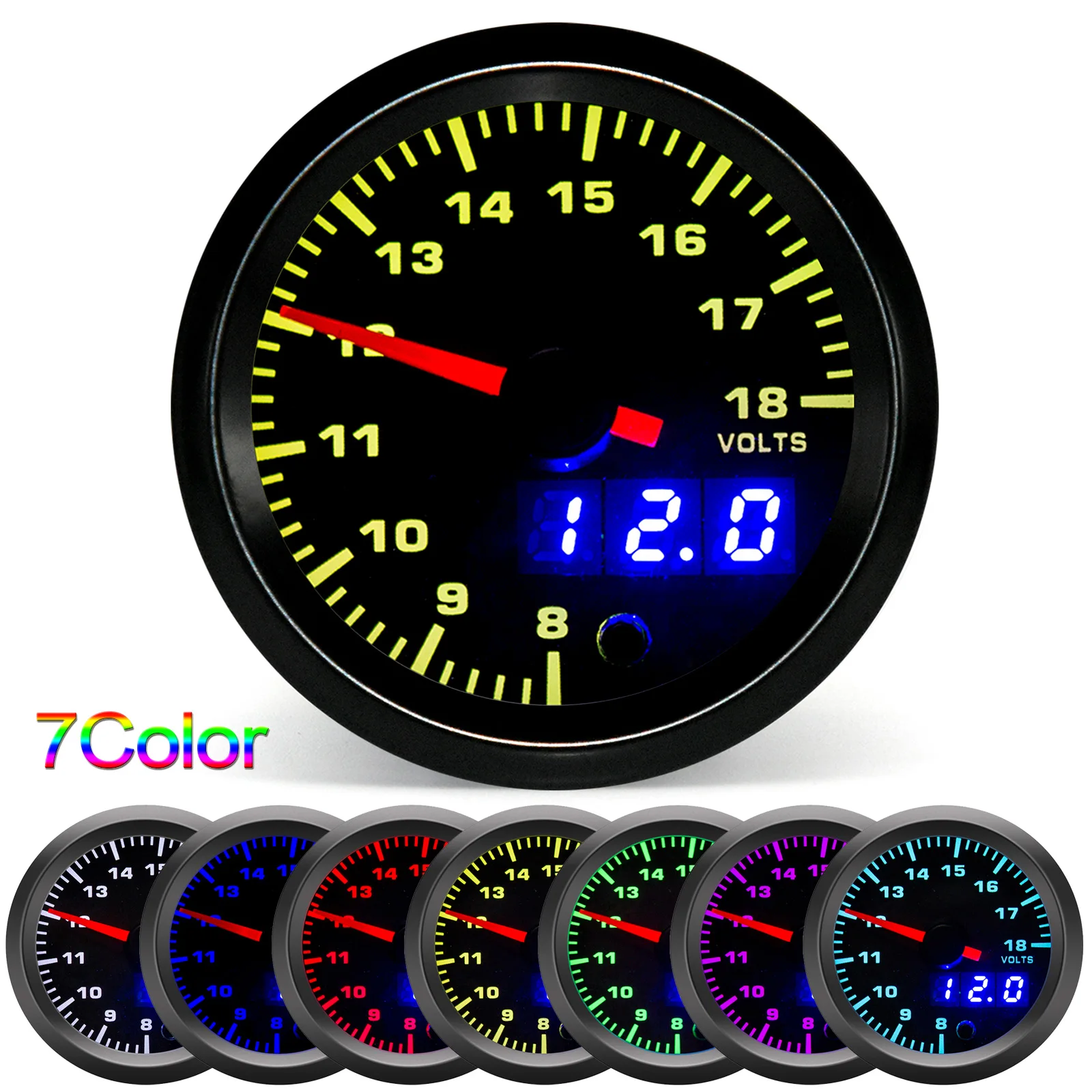 52 مللي متر الرقمية فولت متر LED العرض المزدوج 7 ألوان الخلفية سيارة الجهد مقياس 8-18 فولت 52 مللي متر حامل ل سباق 12 فولت