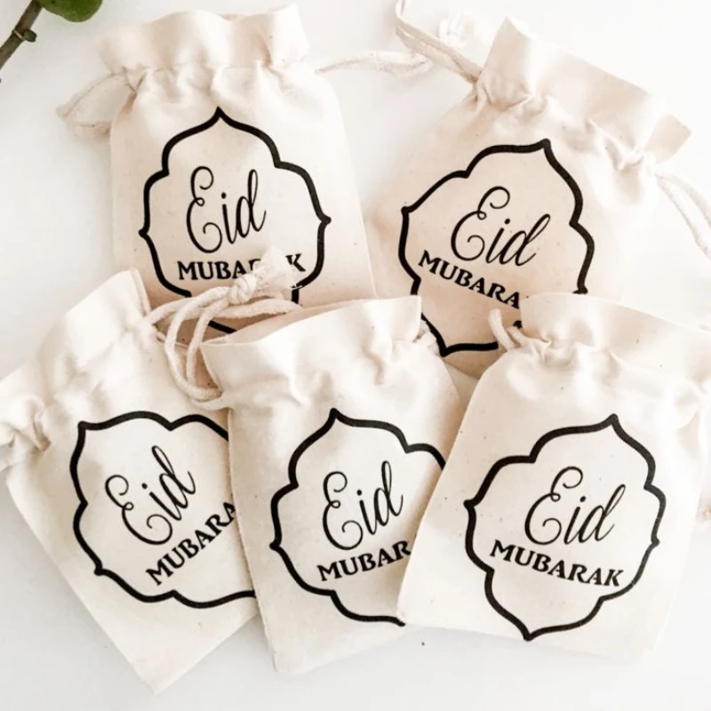 5pcs 5X7in Coton Eid Mubarak Ramadan Goodie Bags Islamic Muslim Gift for Wrapping Treat Party Eid Mubarak Candy Jewelry Bags
