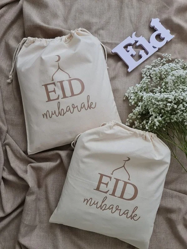 5pcs Ramadan Goodie Bags with Islamic Muslim Eidie Pattern for Wrapping Treat Party Candy Jewelry Bags Coton Bag Eid Mubarak