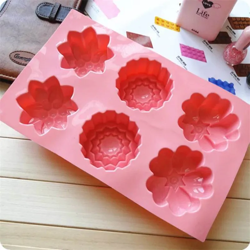 6 زهرة سيليكون قالب الكعكة اليدوية لتقوم بها بنفسك قالب الخبز قوالب السيليكون لكعكة قالب كعك أدوات كعكة