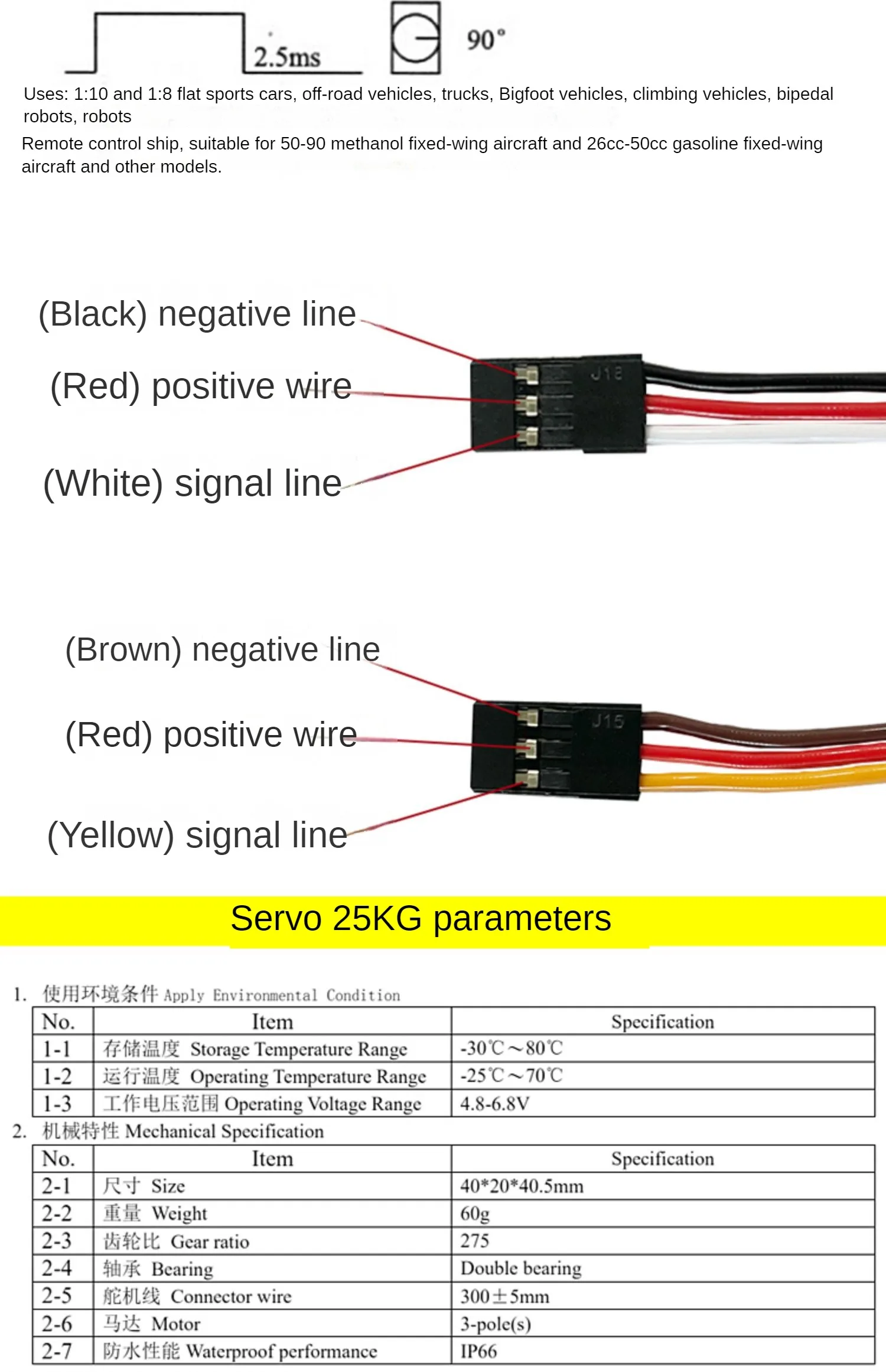 Steering gear three-wire connection: red positive brown negative orange signal, or red positive black negative white signal.