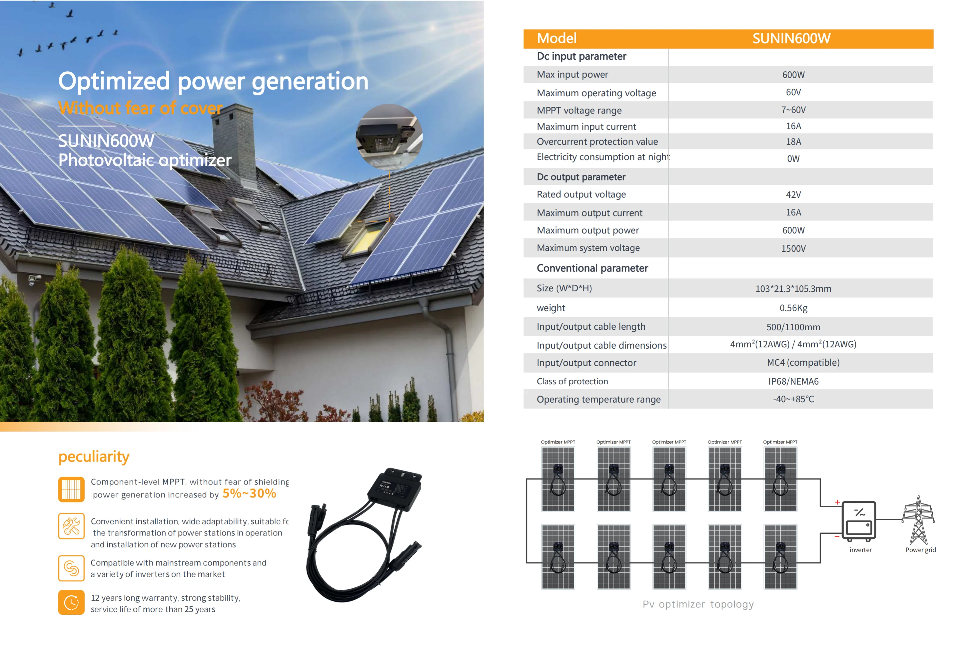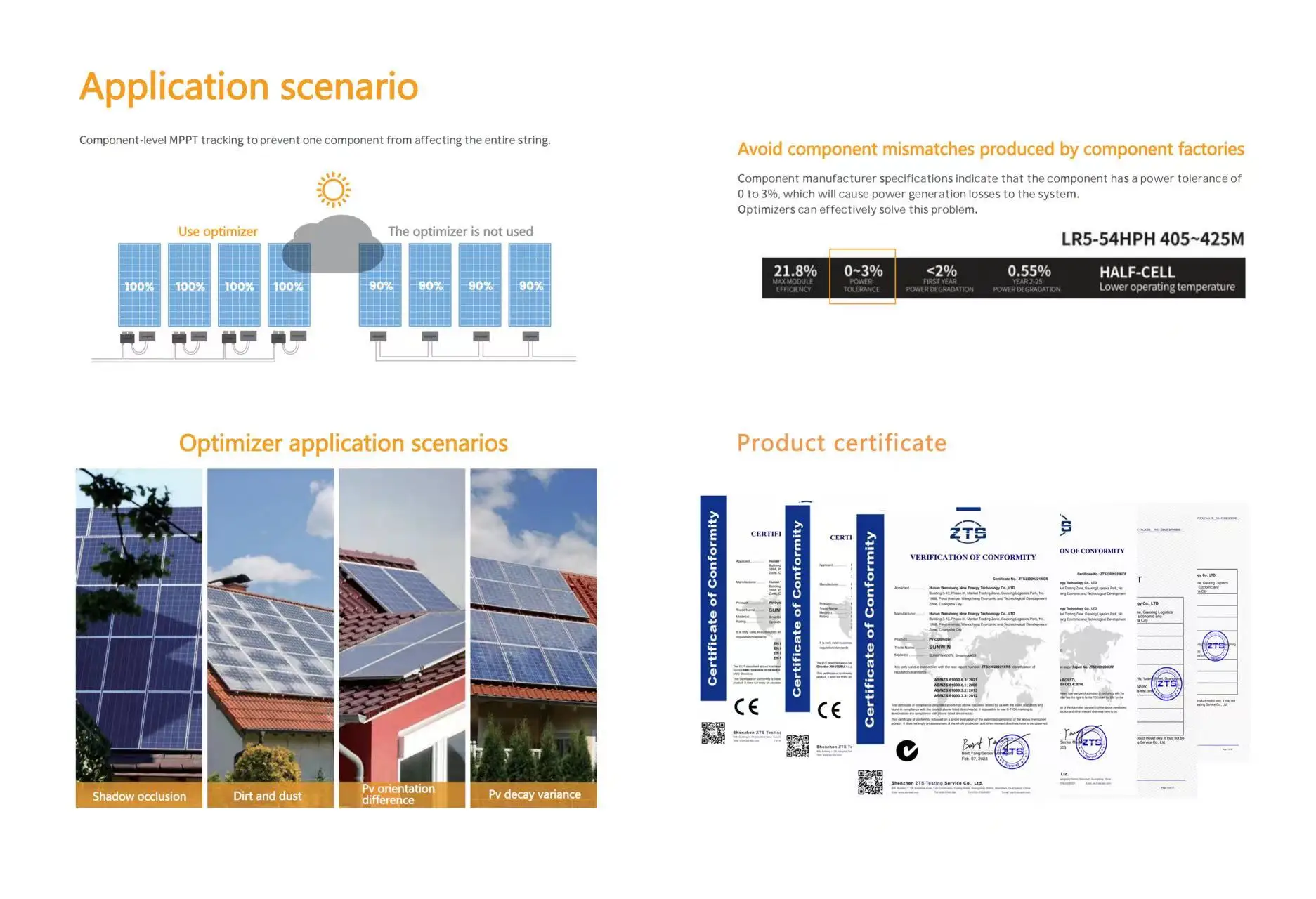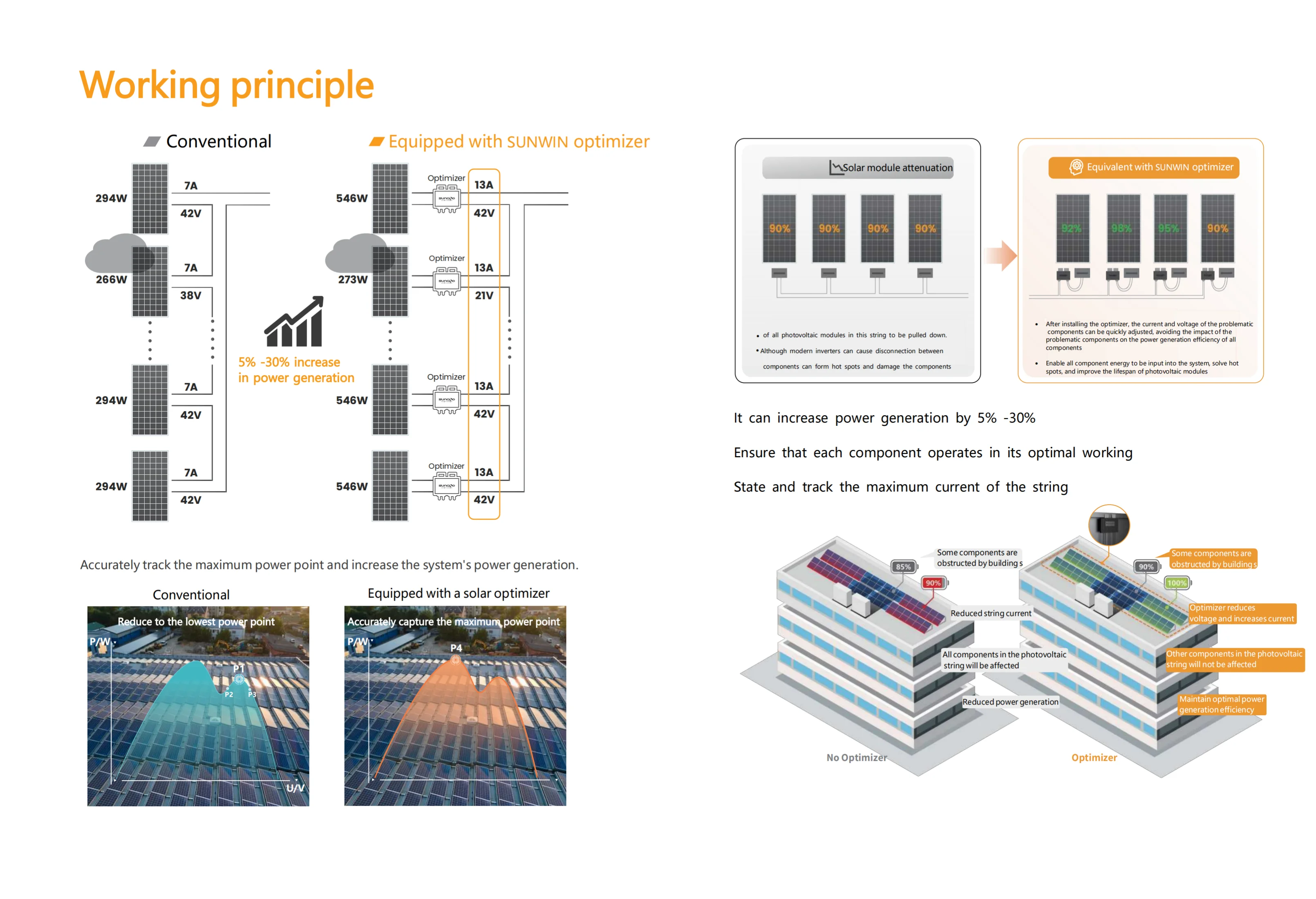 【Improve Efficiency】Solar optimizers are mainly used to optimize the output power of solar photovoltaic panels to ensure that the system can work at maximum efficiency. Solar optimizer can significantly increase system power generation by 5-25%