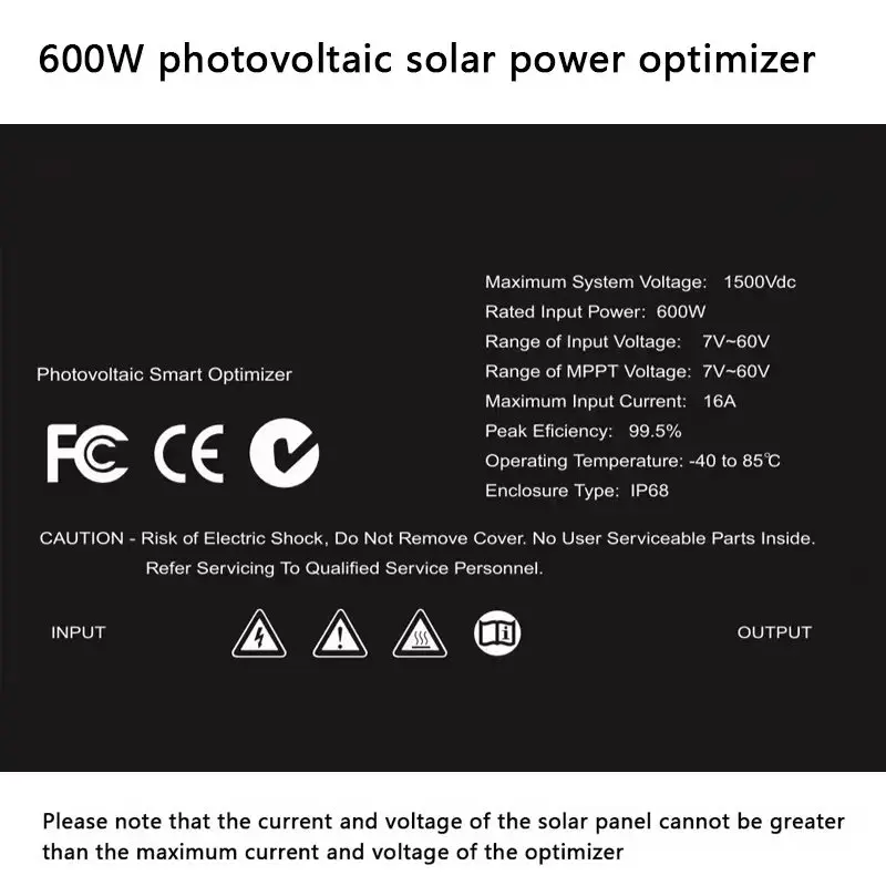 【Simple Installation】Just connect the input end of the solar panel optimizer module to the output end of the photovoltaic module to convert the small current into a large current. The installation is convenient and simple.