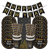 69 قطعة ليلة رأس السنة الجديدة زينة حفلة الذهب الأسود سعيد السنة الجديدة راية أكواب لوحات 2023 السنة الجديدة حفلة لوازم الطاولة/المائدة قابل للتصرف مجموعات