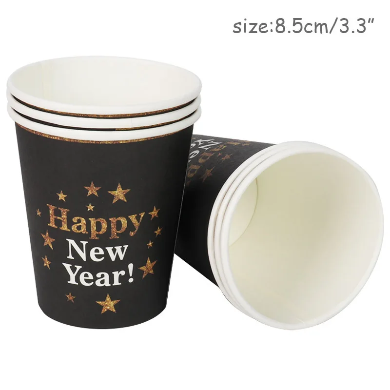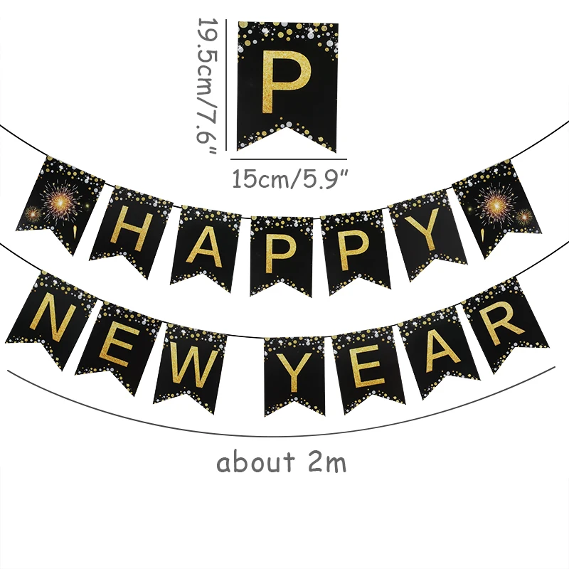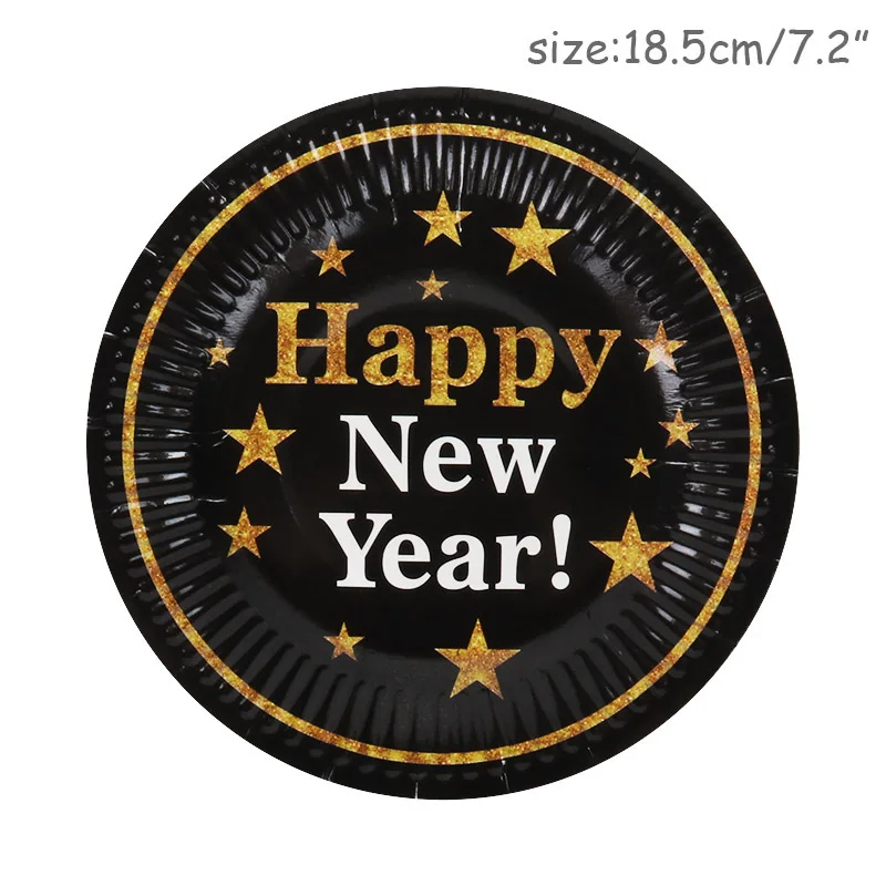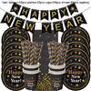 69 قطعة ليلة رأس السنة الجديدة زينة حفلة الذهب الأسود سعيد السنة الجديدة راية أكواب لوحات 2023 السنة الجديدة حفلة لوازم الطاولة/المائدة قابل للتصرف مجموعات