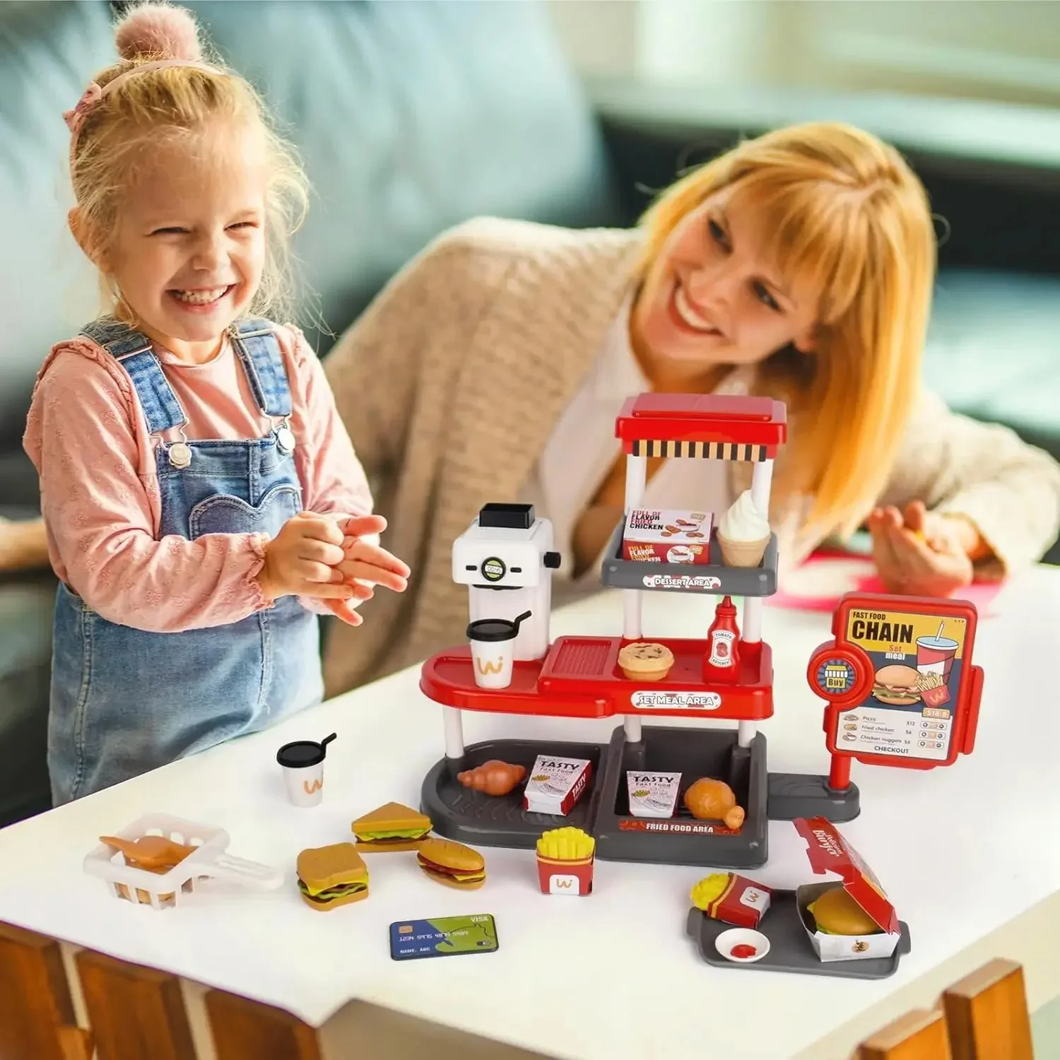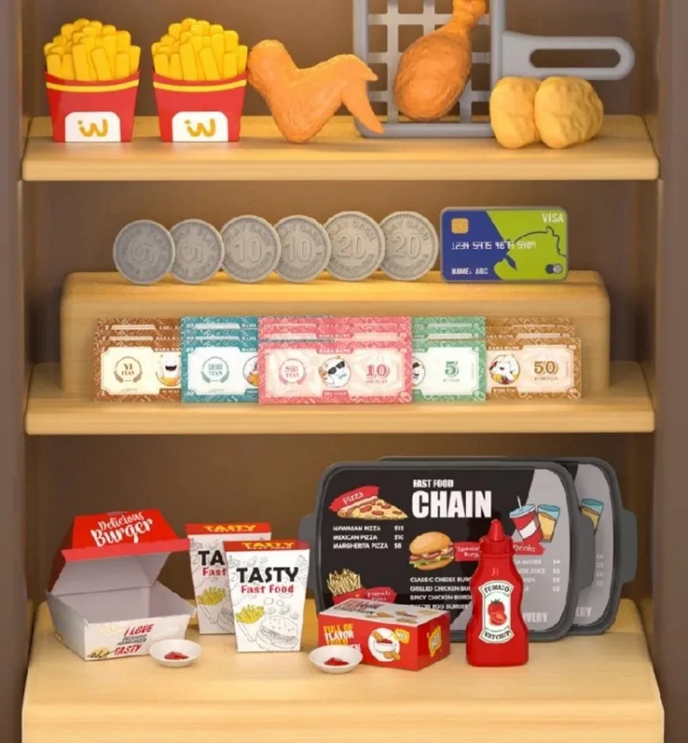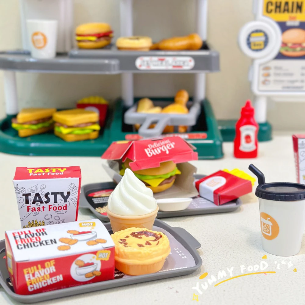 【 Education Enlightenment 】This pretend play toys is perfect for boys and girls ages 3 and up.When children pretend to run their own mini fast food restaurants, take orders, cook delicious meals, and develop basic life skills such as counting, sorting, and socializing, it can encourage imagination and creativity.