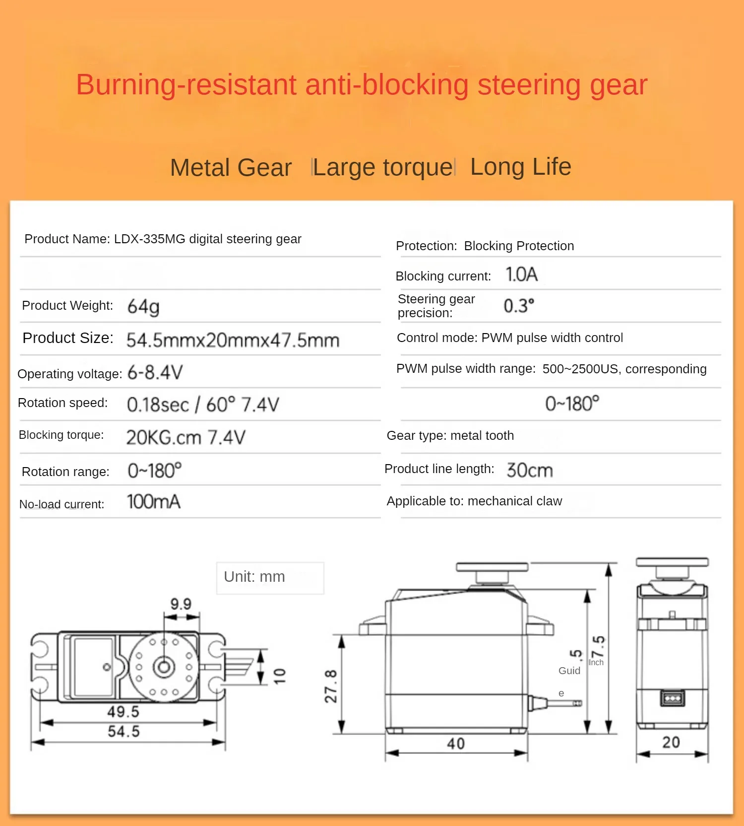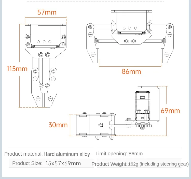 Product weight: 162g (including steering gear)