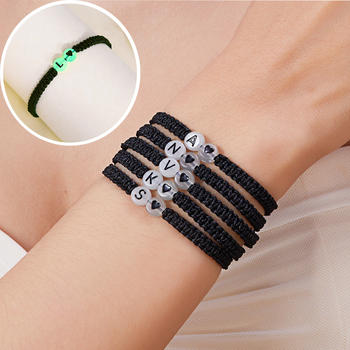 Luminous Couples A-Z Letters Bracelet For Women Black Rope Charm Friendship Girlfriend Party Grow in the dark Jewelry Gift