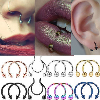 2 قطعة خاتم للأنف من الاستانلس استيل الحاجز حدوة الحصان هوب أقراط قرط كبس الشفاه الدائري هوك هيئة ثقب مجوهرات بسيطة