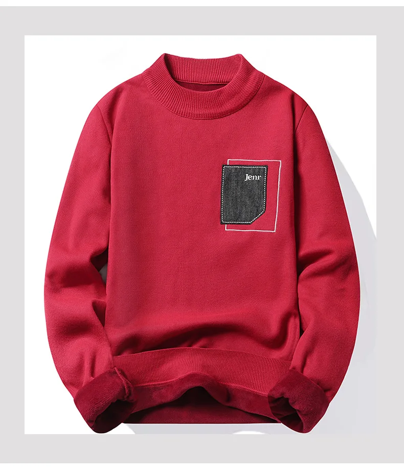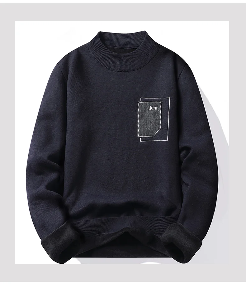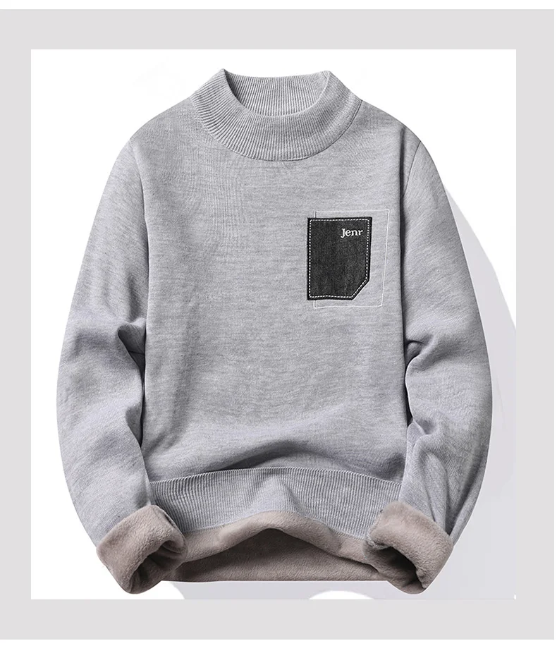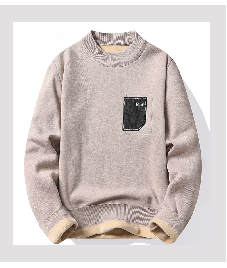 Added Velvet Pullover Man 2024 Autumn Winter New Solid Color Fashion Warm Casual Sweater Thickened Sweater Size 4XL Top Quality