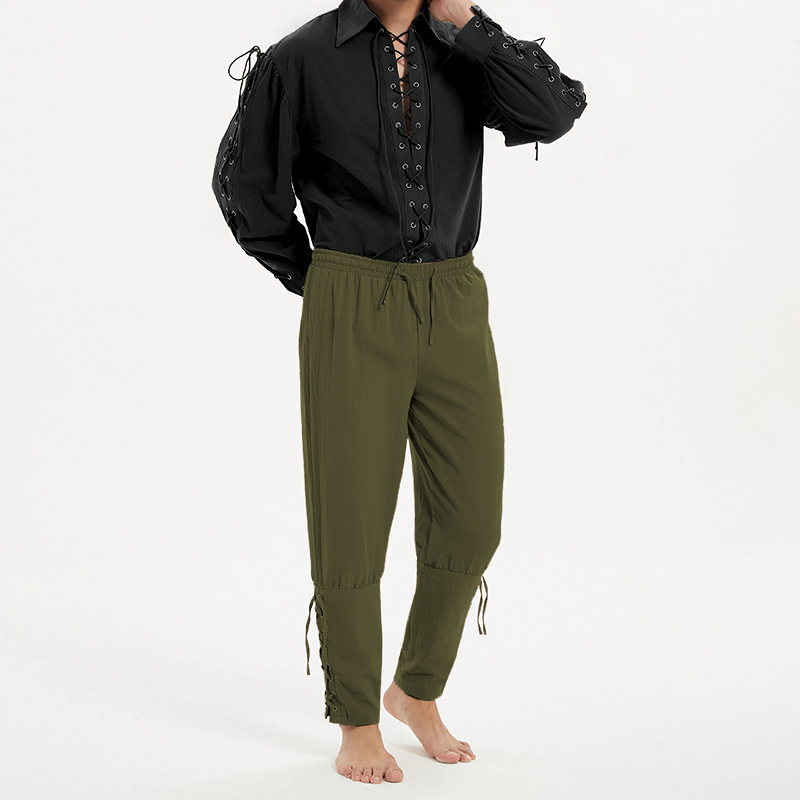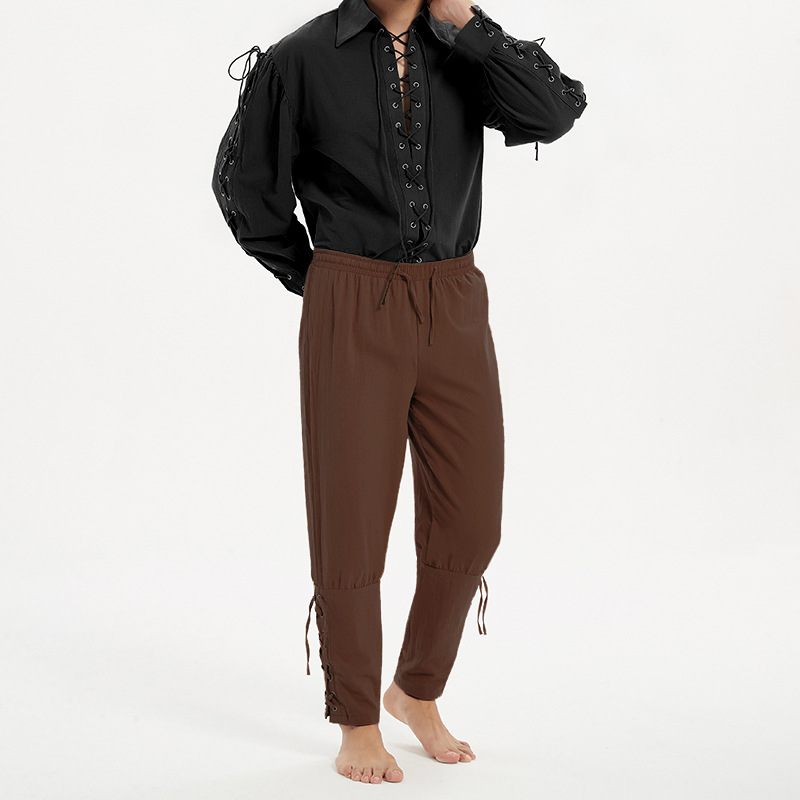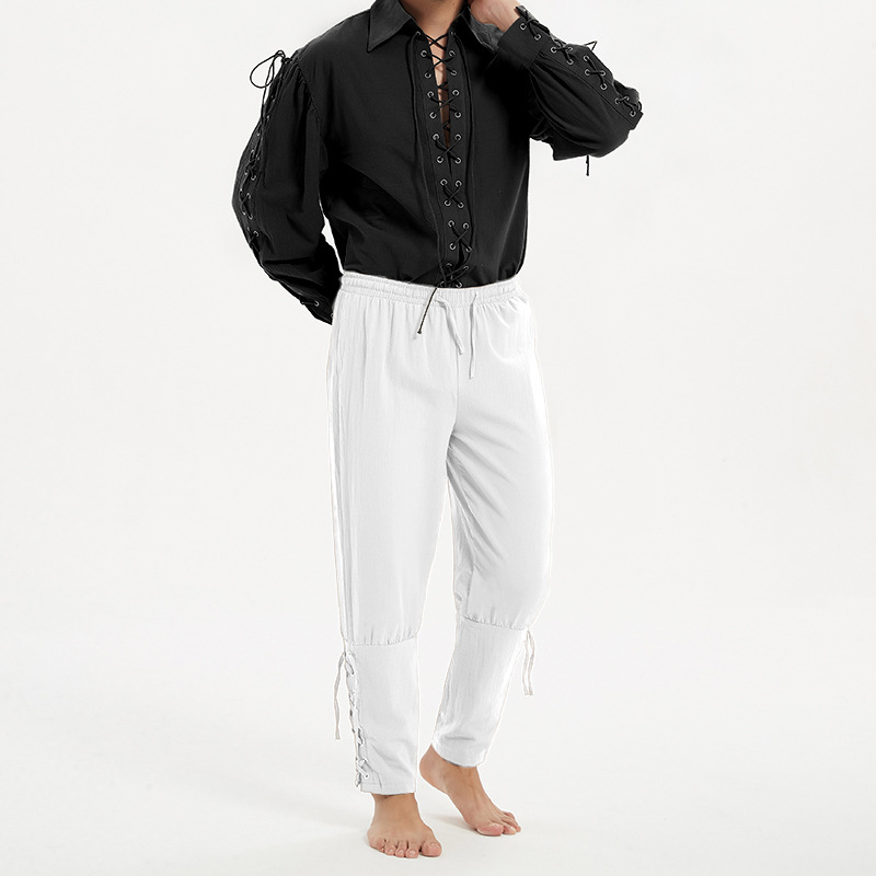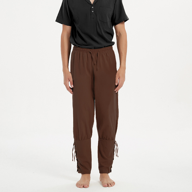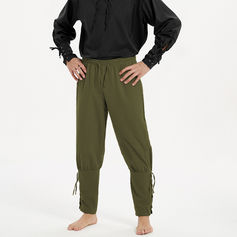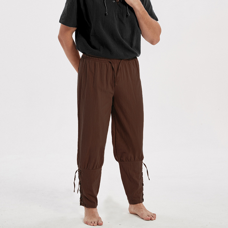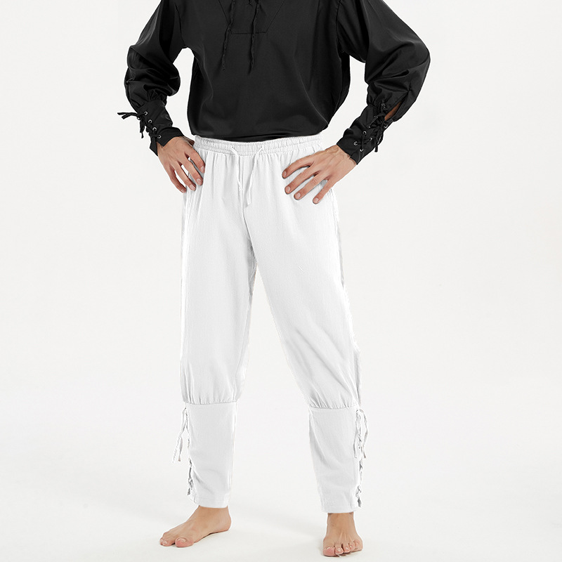 Adult Men Medieval Pirate Pants Cotton Linen Horseman Knight Costume Loose Leggings Black Navigator Leg Bandage Trouser