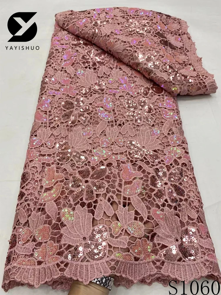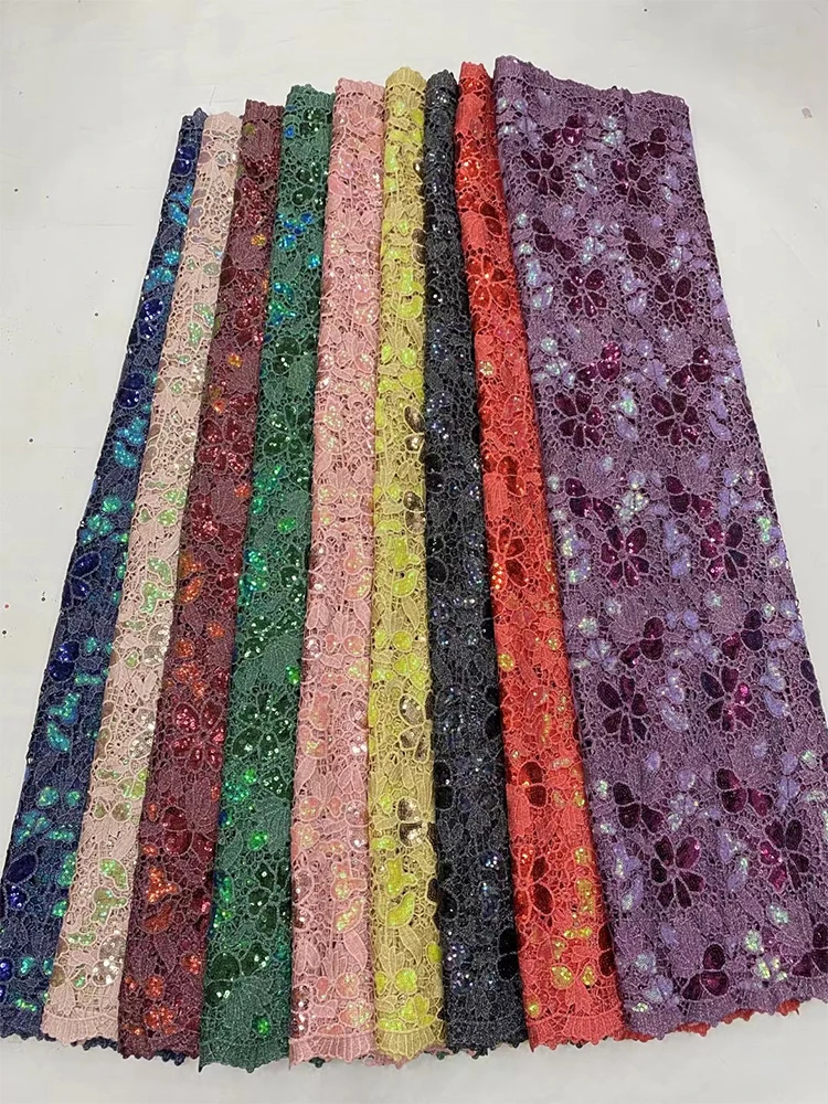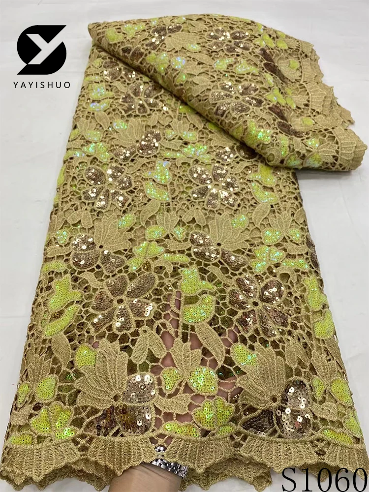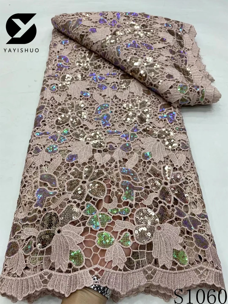 African Lace Fabric with Sequins, Nigerian Lace, Cord Lace, French for Wedding Party Dresses, High Quality, 5 Yards, S1060, 2024