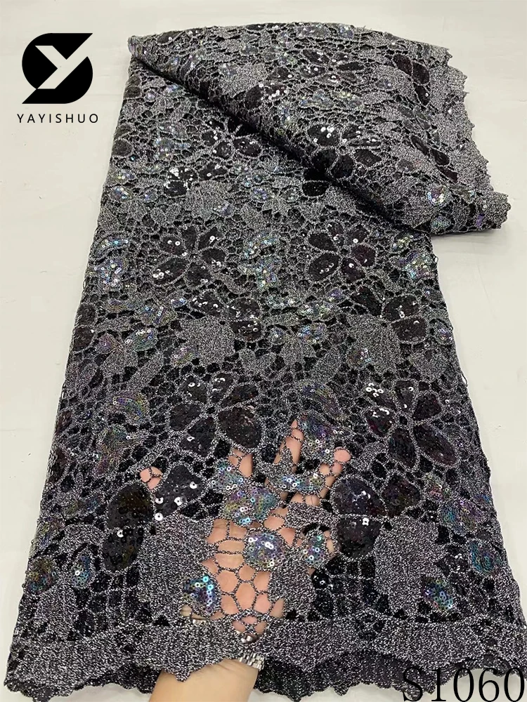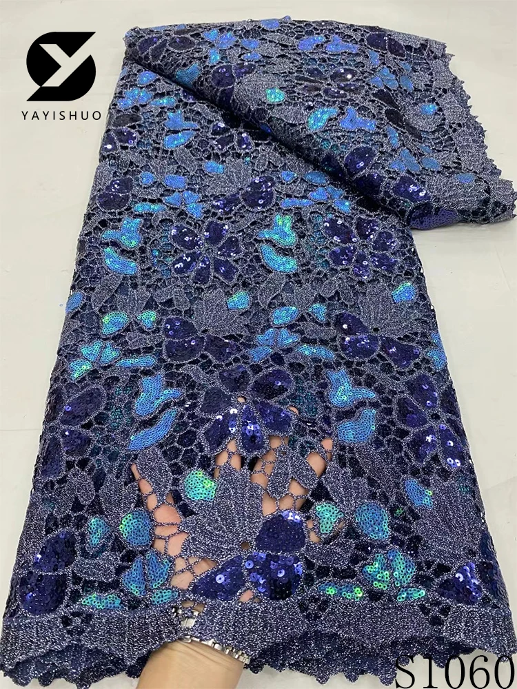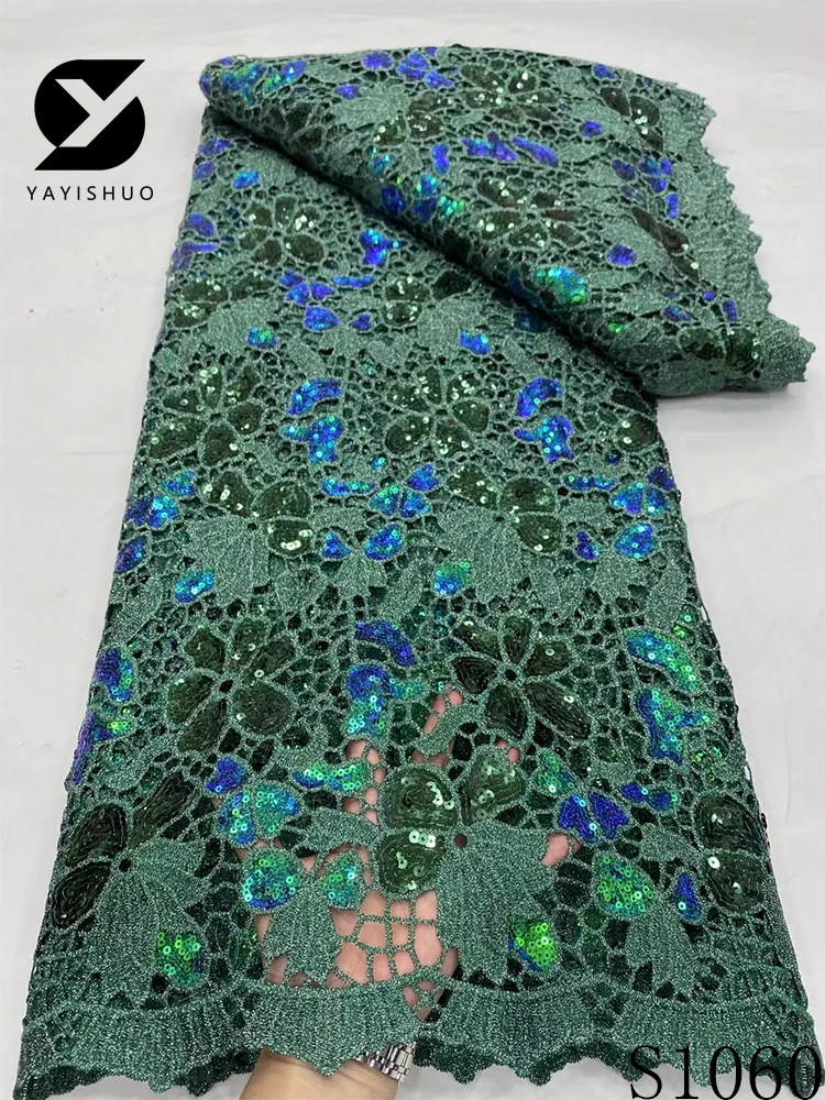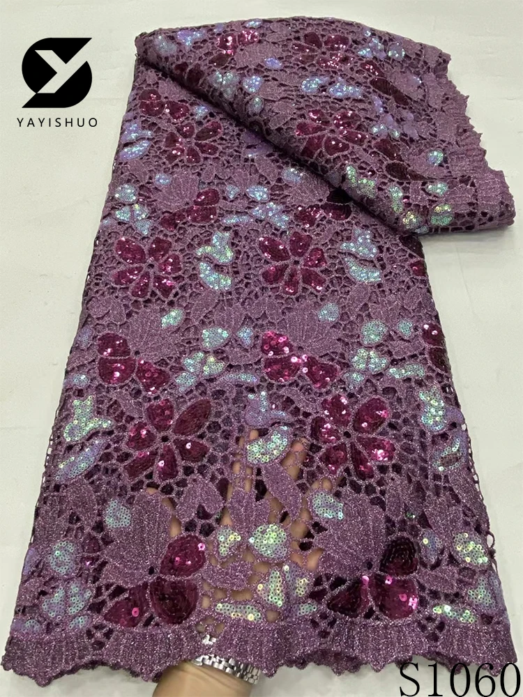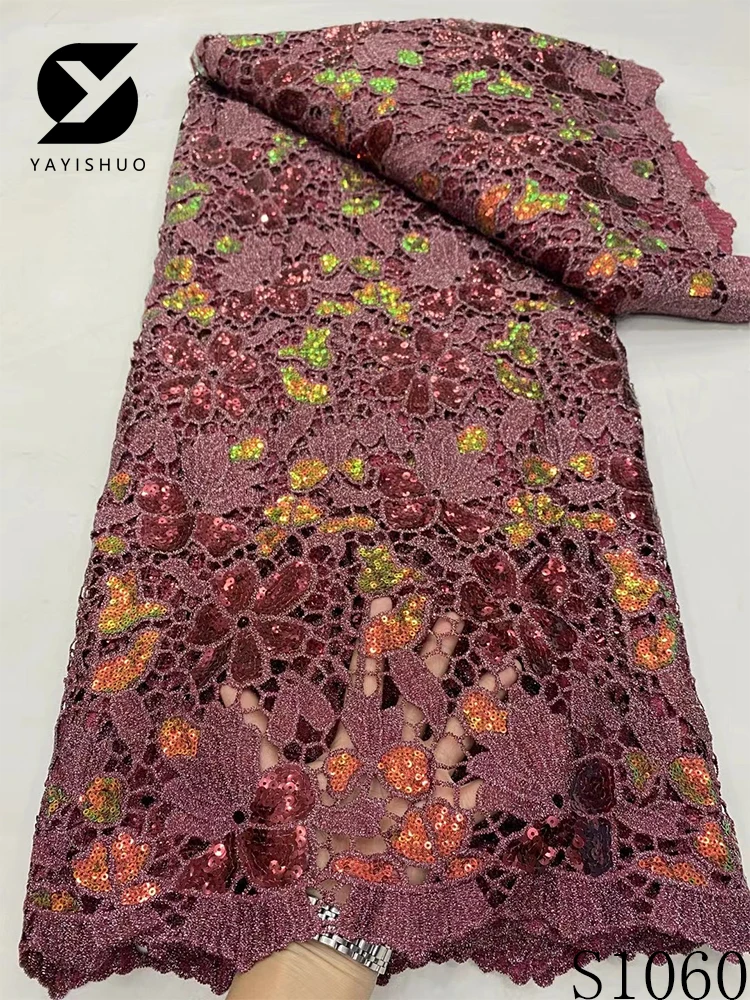 African Lace Fabric with Sequins, Nigerian Lace, Cord Lace, French for Wedding Party Dresses, High Quality, 5 Yards, S1060, 2024