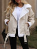 Ailegogo Autumn Winter Women Loose Warm Moto Biker Faux Lamb Fur Coat Vintage Female Belt Zipper Jacket Retro Outwear
