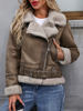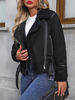 Ailegogo Autumn Winter Women Retro Loose Thick Warm Faux Lamb Fur Coat Streetwear Female Moto Biker Coat Zipper Belt Outwear