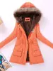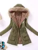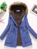 Ailegogo New Autumn Winter Women Cotton Jacket Padded Casual Slim Coat Emboridery Hooded Parkas Wadded Warm Overcoat