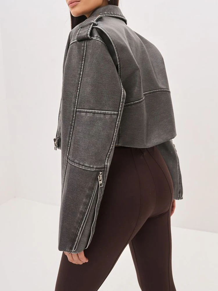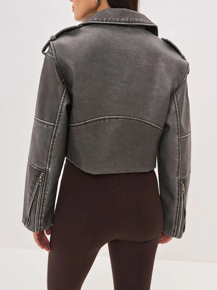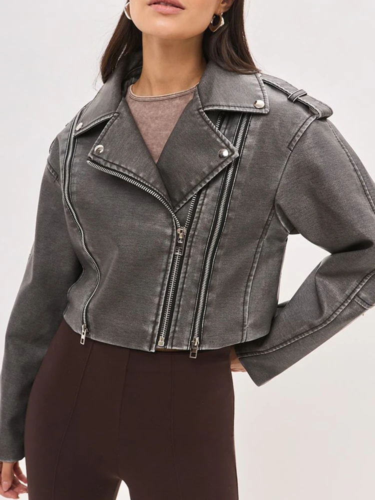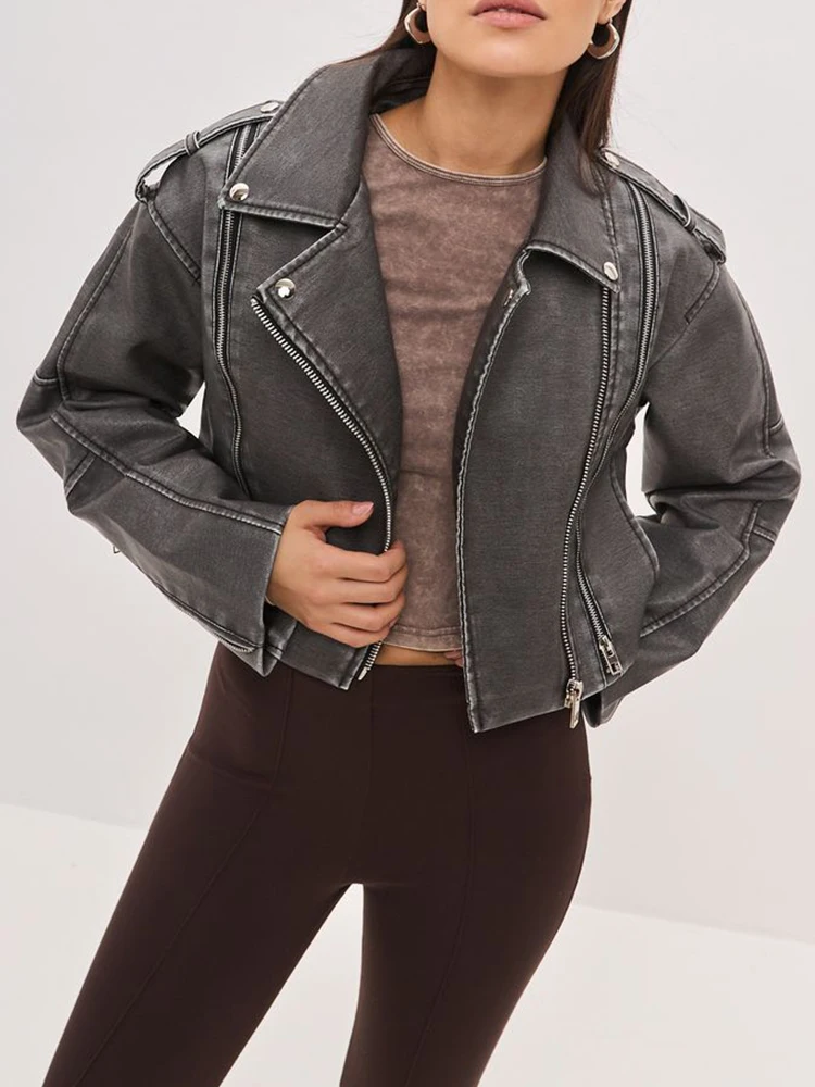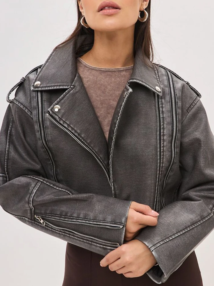 Ailegogo New Spring Autumn Women Retro Short Pu Faux Leather Jacket Streetwear Female Loose Zipper Coat Outwear