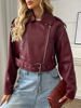Ailegogo New Streetwear Women Loose Short Pu Faux Leather Jacket Moto Biker Female Belt Zipper Coat Outwear