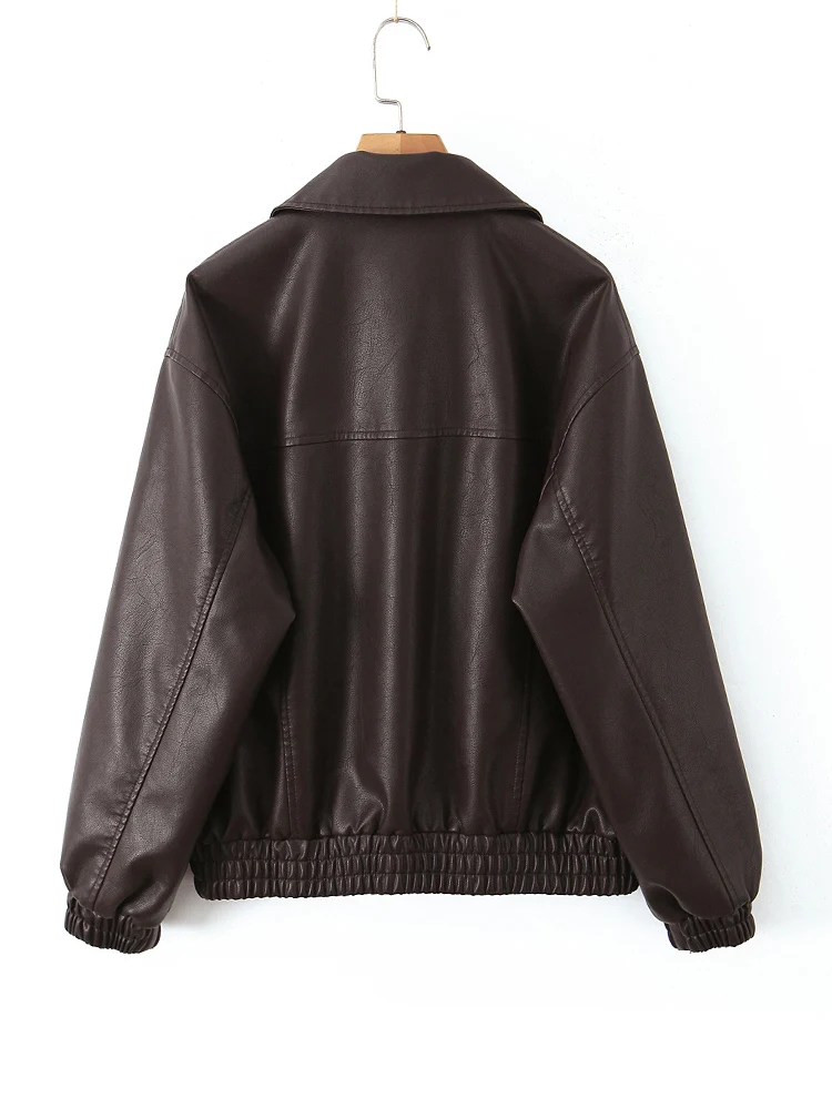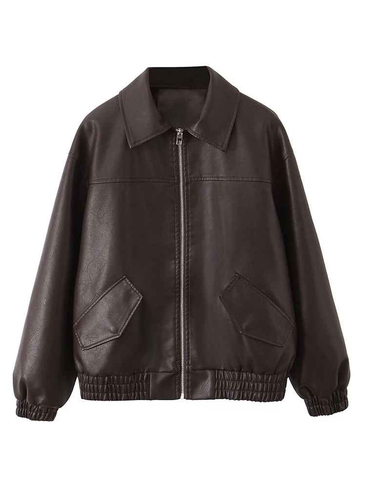 Ailegogo New Women Vintage Loose Faux Leather Jacket Streetwear Female Spring Autumn Female Zipper Coat Outwear