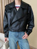Ailegogo Spring Autumn Women High Street Short Pu Faux Leather Jacket Moto Biker Female Loose Big Pocket Coat Chic Outwear