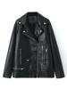 Ailegogo Spring Autumn Women Streetwear Loose Black Pu Faux Leather Jacket Moto Biker Female Zipper Spliced Coat Chic Outwear
