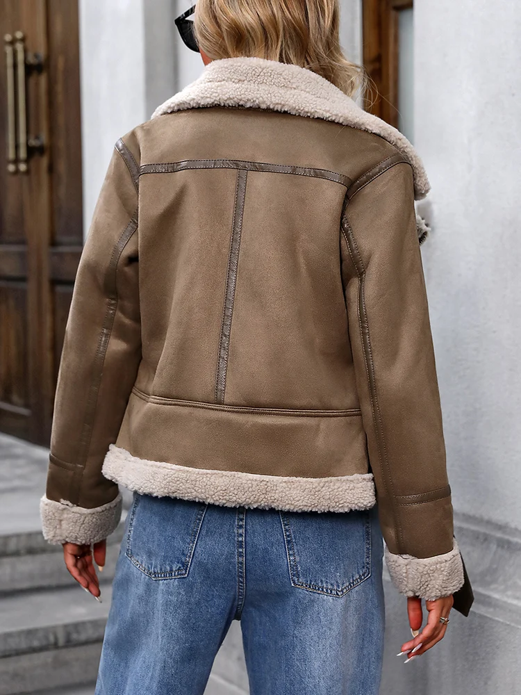 Ailegogo Streetwear Women Loose Thick Warm Retro Faux Lamb Fur Jacket Autumn Winter Female Zipper Belt Coat Outwear