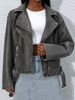 Ailegogo Streetwear Women Retro Loose Pu Faux Leather Jacket Spring Autumn Female Zipper Belt Coat Vintage Outwear