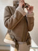 Ailegogo Streetwear Women Retro Slim Thick Warm Faux Suede Leather Fur Short Jacket Moto Biker Female Zipper Belt Coat Outwear