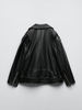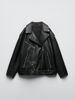 Ailegogo Women Loose Motorcycle Biker Black Pu Faux Leather Jacket with Belt Spring Autumn Female Zipper Coat Outwear