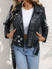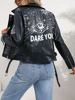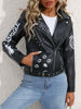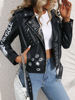 Ailegogo Women Retro Short Graffit Print Slim Pu Faux Leather Jacket Streetwear Female Zipper Belt Coat Moto Biker Outwear