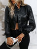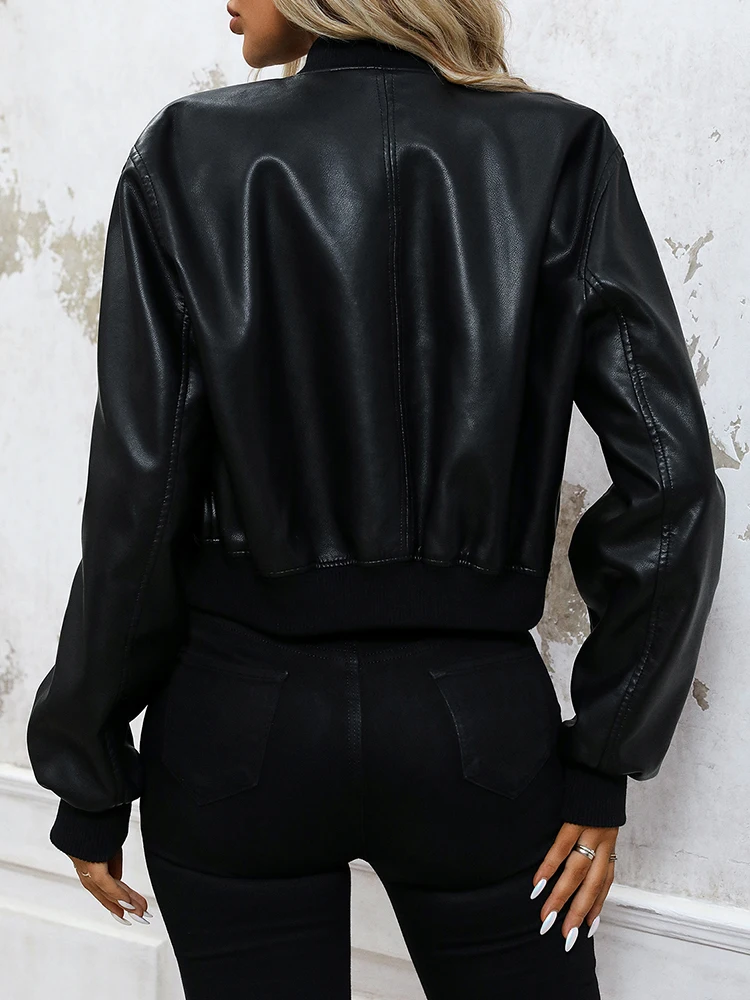 Ailegogo Women Vintage Black Short Pu Faux Leather Jacket Spring Autumn Female Streetwear Zipper O-neck Coat Outwear
