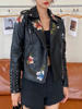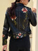 Ailegogo Women Vintage Floral Print Embroidery Short Black Pu Faux Leather Jacket Spring Autumn Female Zipper Coat Retro Outwear