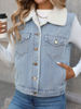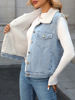 Ailegogo Women Vintage Spliced Denim Faux Lamb Fur Waistcoat Streetwear Female Retro Single Breasted Warm Sleeveless Outwear