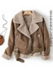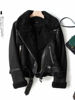 Ailegogo Women Winter Faux Shearling Sheepskin Leather Jackets Female Thick Warm Suede Lambs Short Motorcycle Brown Coat Outwear
