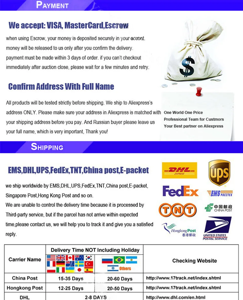 • طريقة الدفع الموثوقة: نحن نتشارك مع الأكثر شيوعًا حلول الدفع عبر الإنترنت التي تضمن أمانًا محسنًا ومعالجة سريعة للمعاملات