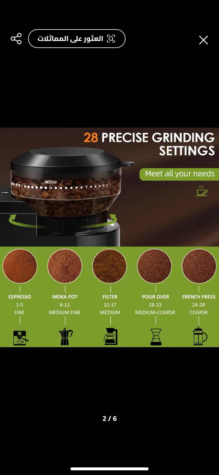 28 major settings with micro-adjustment for perfect fine to coarse grinding. Grinds coffee beans for espresso, cold brew, French press and much more. Elevate your daily coffee journey with our burr coffee grinder. With 28 precise grind settings, it dffortlessly transforms beans into aromatic excellence.Relish each sip and enrich your mornings,one cup at a time.Don not miss out-experence a new level of coffee enjoyment now.