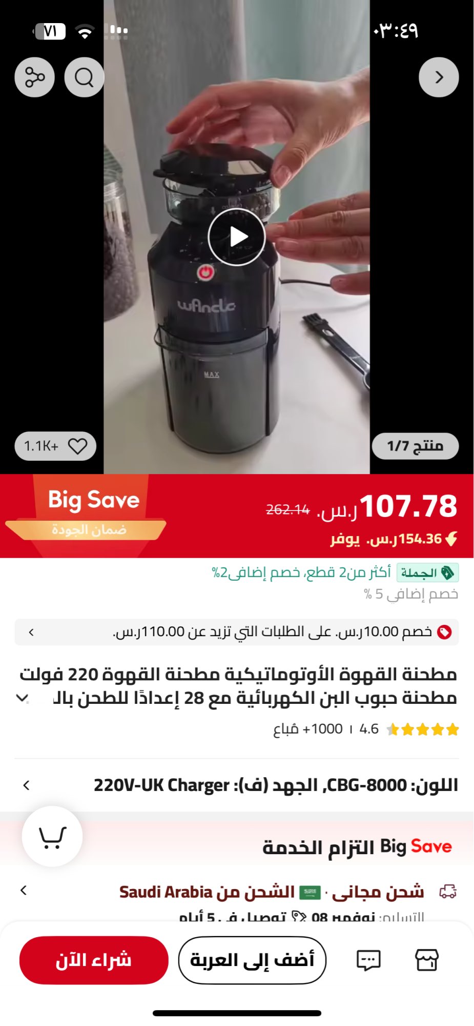 حلوه ووصلت بسرعه ومافيها اي مشكله 😻 تعتبر مره اقتصاديه وبديل جيد للمطاحن الغاليه