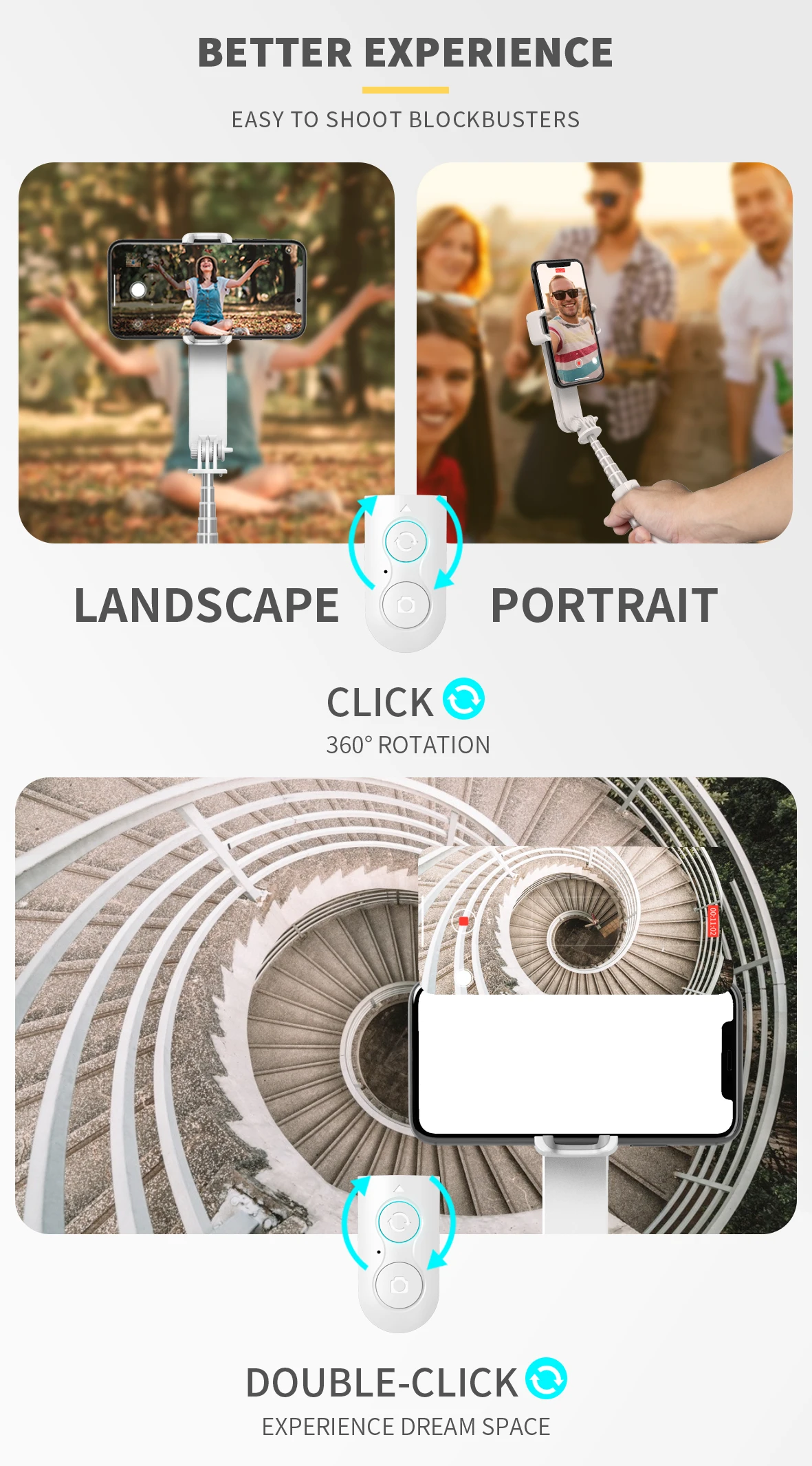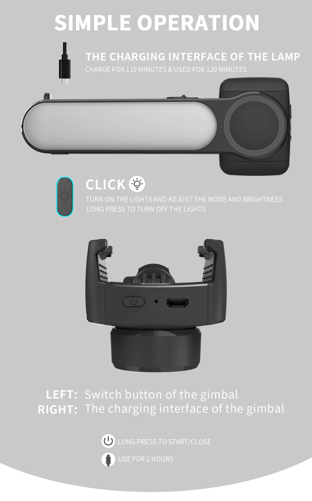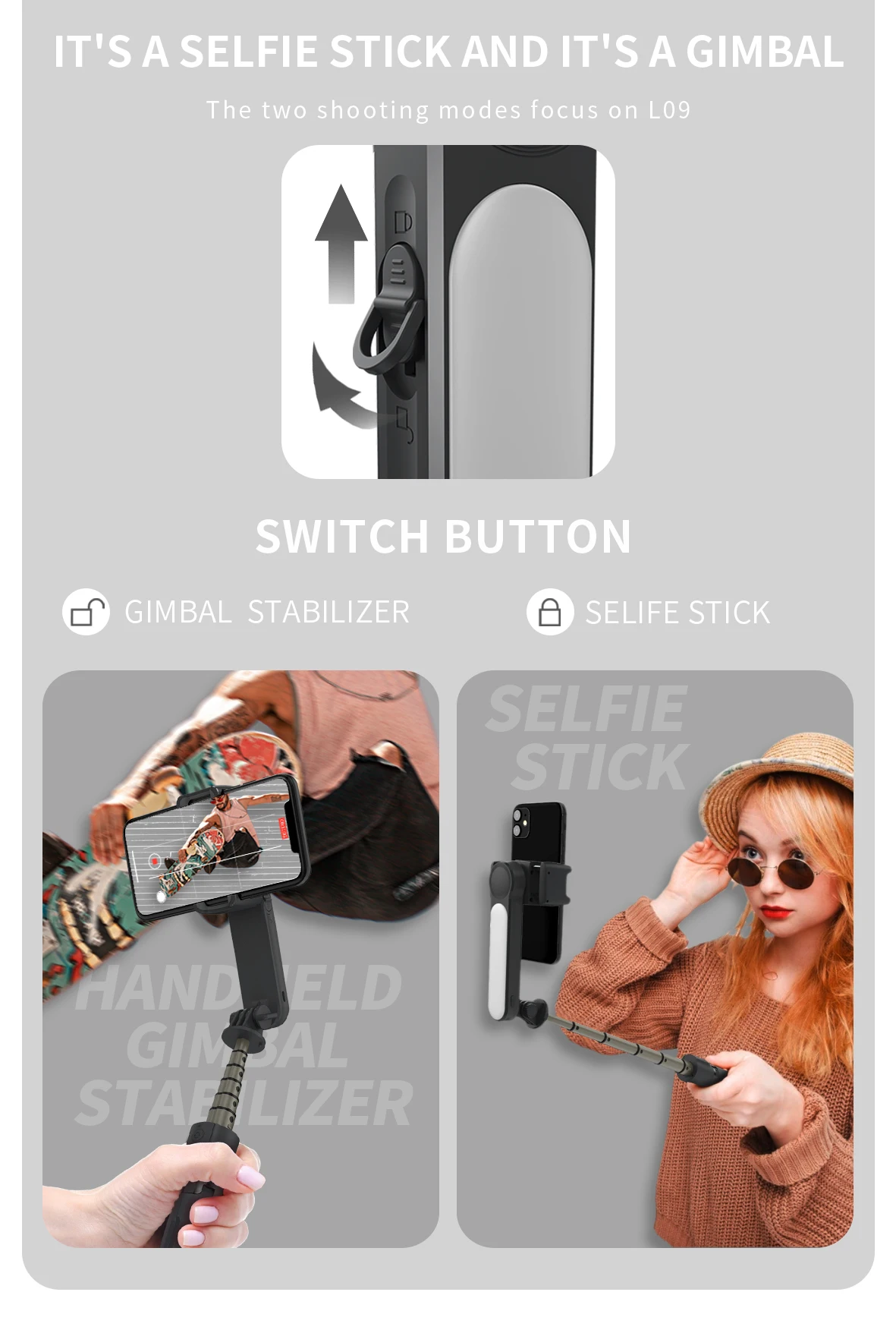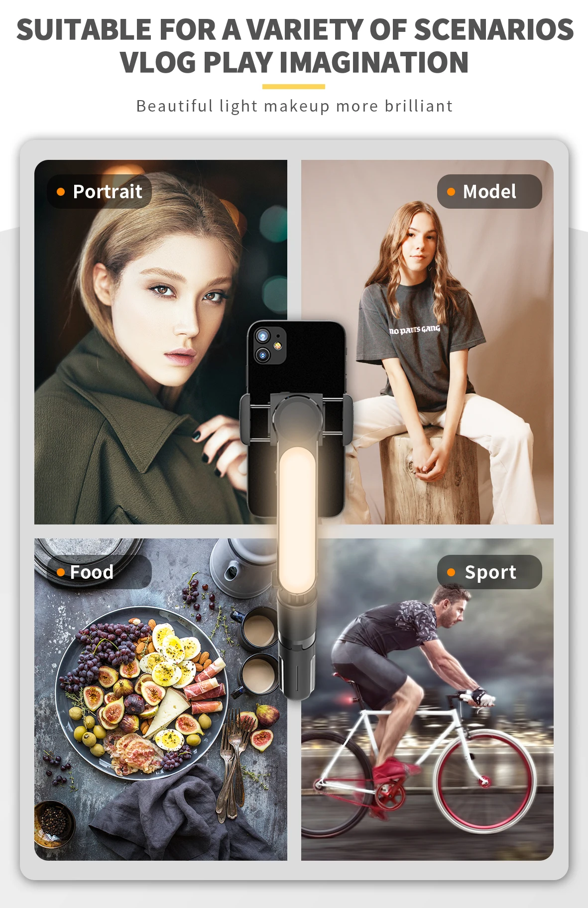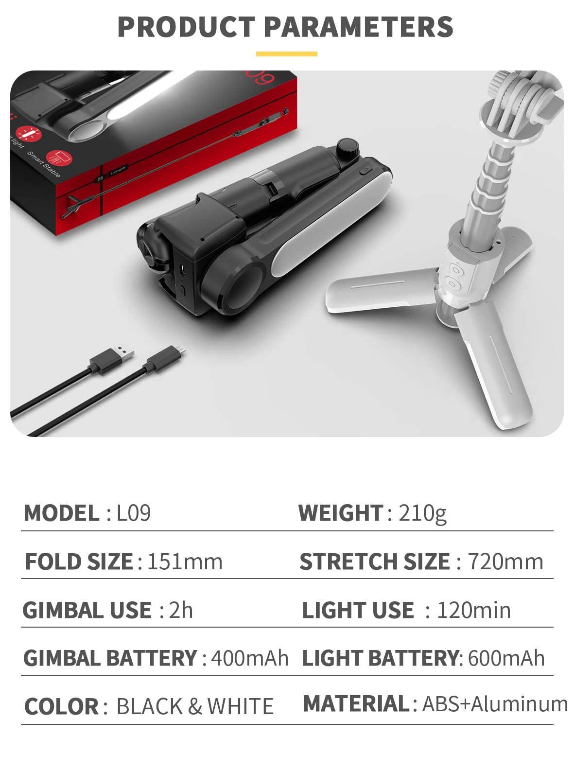 Selfie عصا ترايبود للهاتف التلقائي التوازن مثبت أفقي مع ملء ضوء بلوتوث عن بعد للهواتف الذكية IOS أندرويد