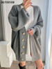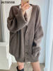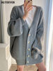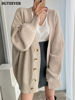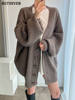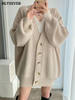 BGTEEVER بلوزات نسائية فضفاضة غير رسمية واحدة الصدر المفتوحة غرزة بلوزات للخريف والشتاء على شكل حرف v وأكمام كاملة للنساء محبوك بأزرار