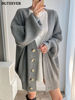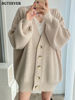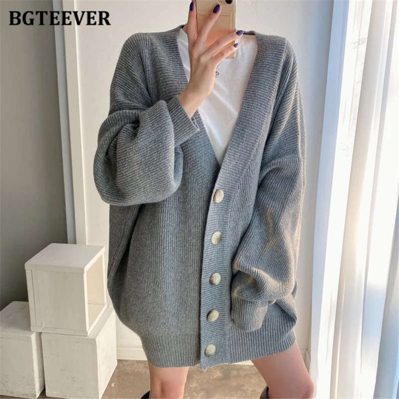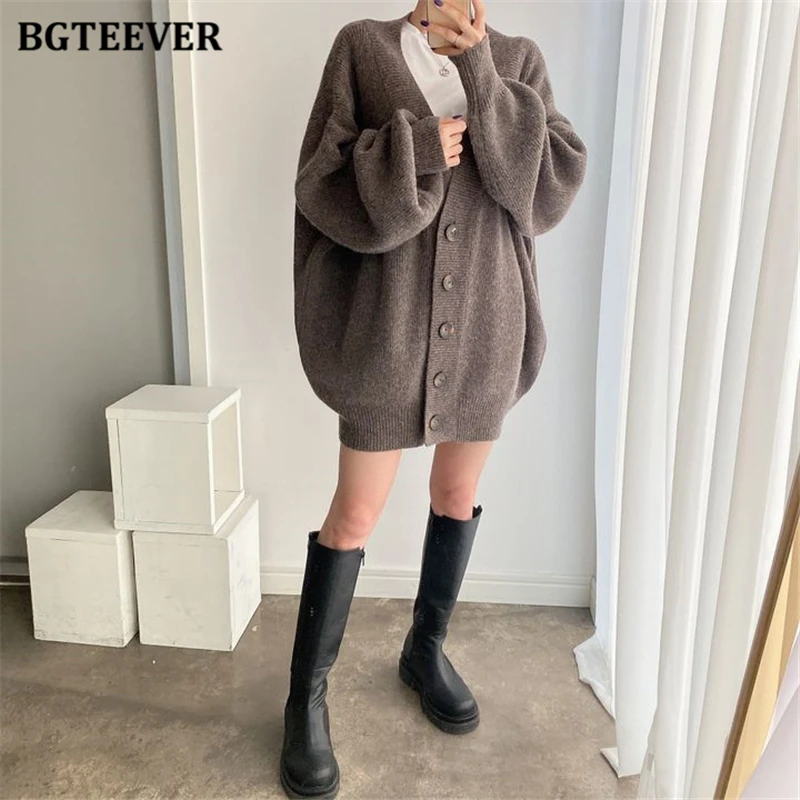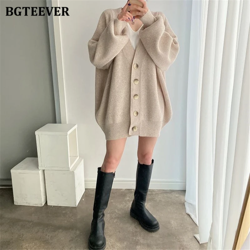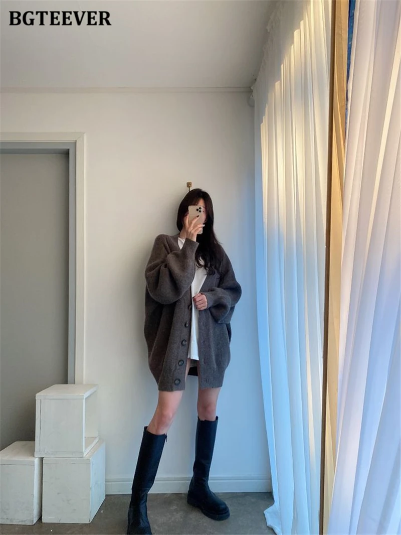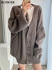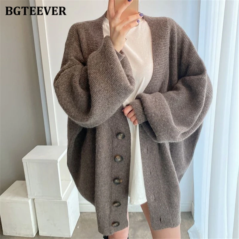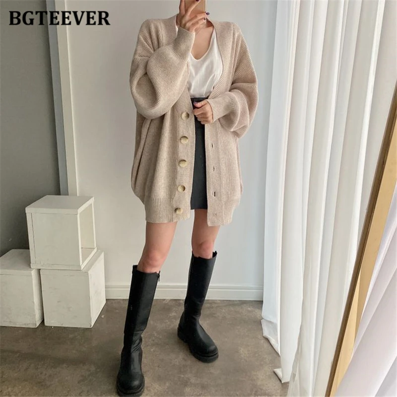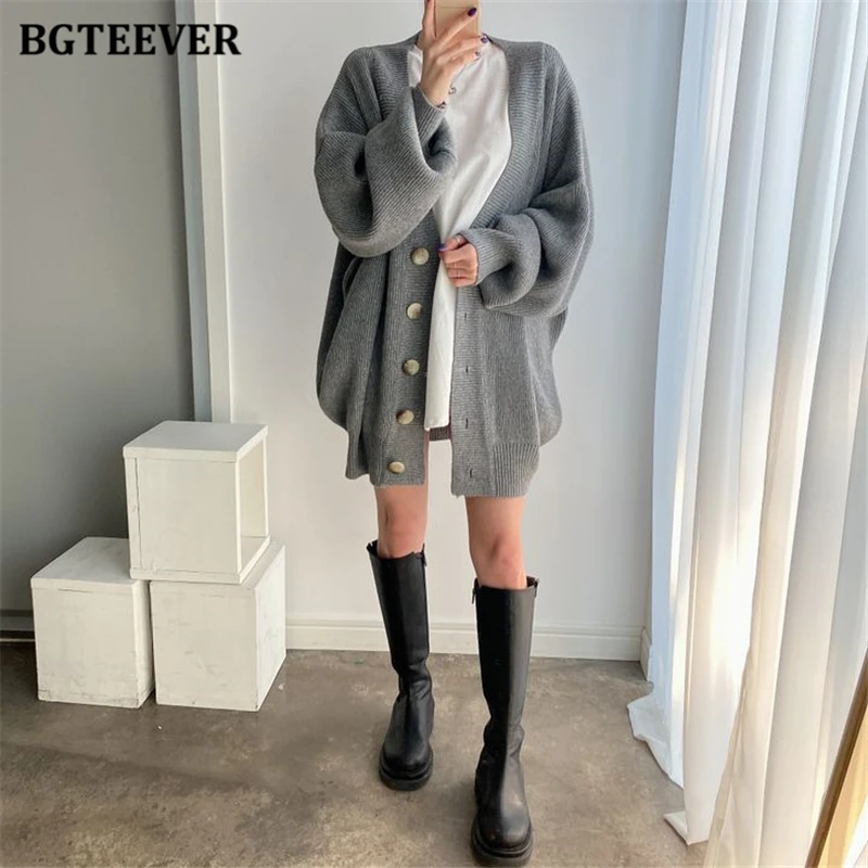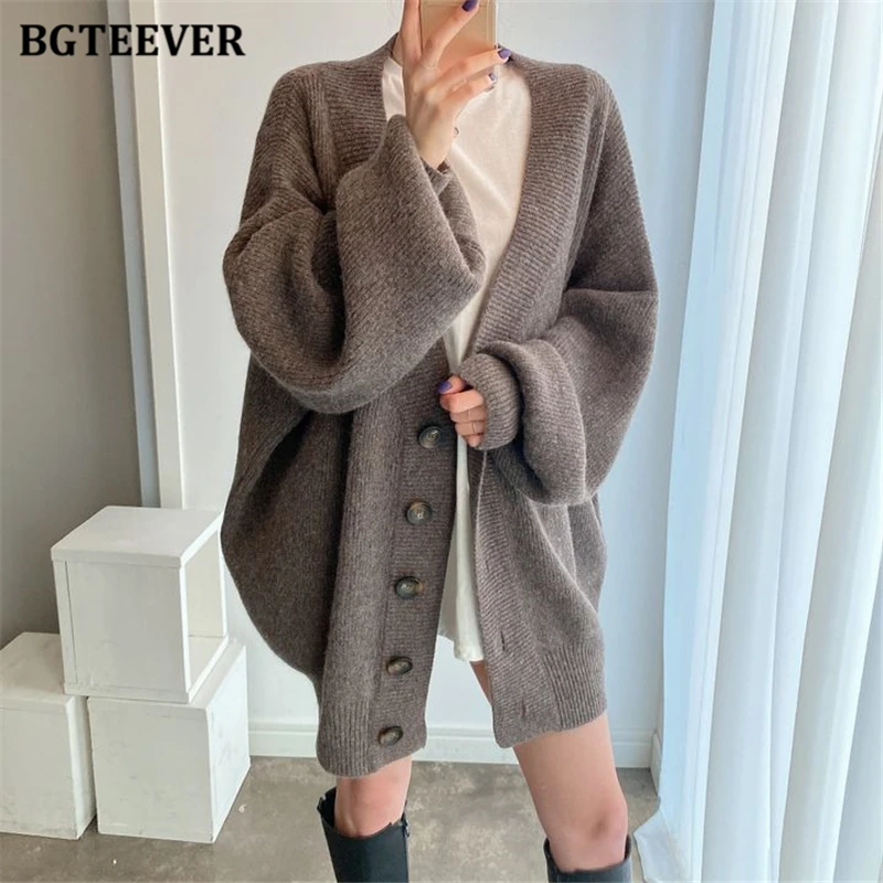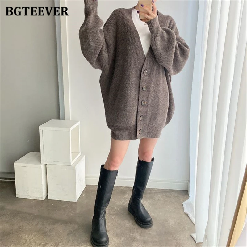 BGTEEVER بلوزات نسائية فضفاضة غير رسمية واحدة الصدر المفتوحة غرزة بلوزات للخريف والشتاء على شكل حرف v وأكمام كاملة للنساء محبوك بأزرار